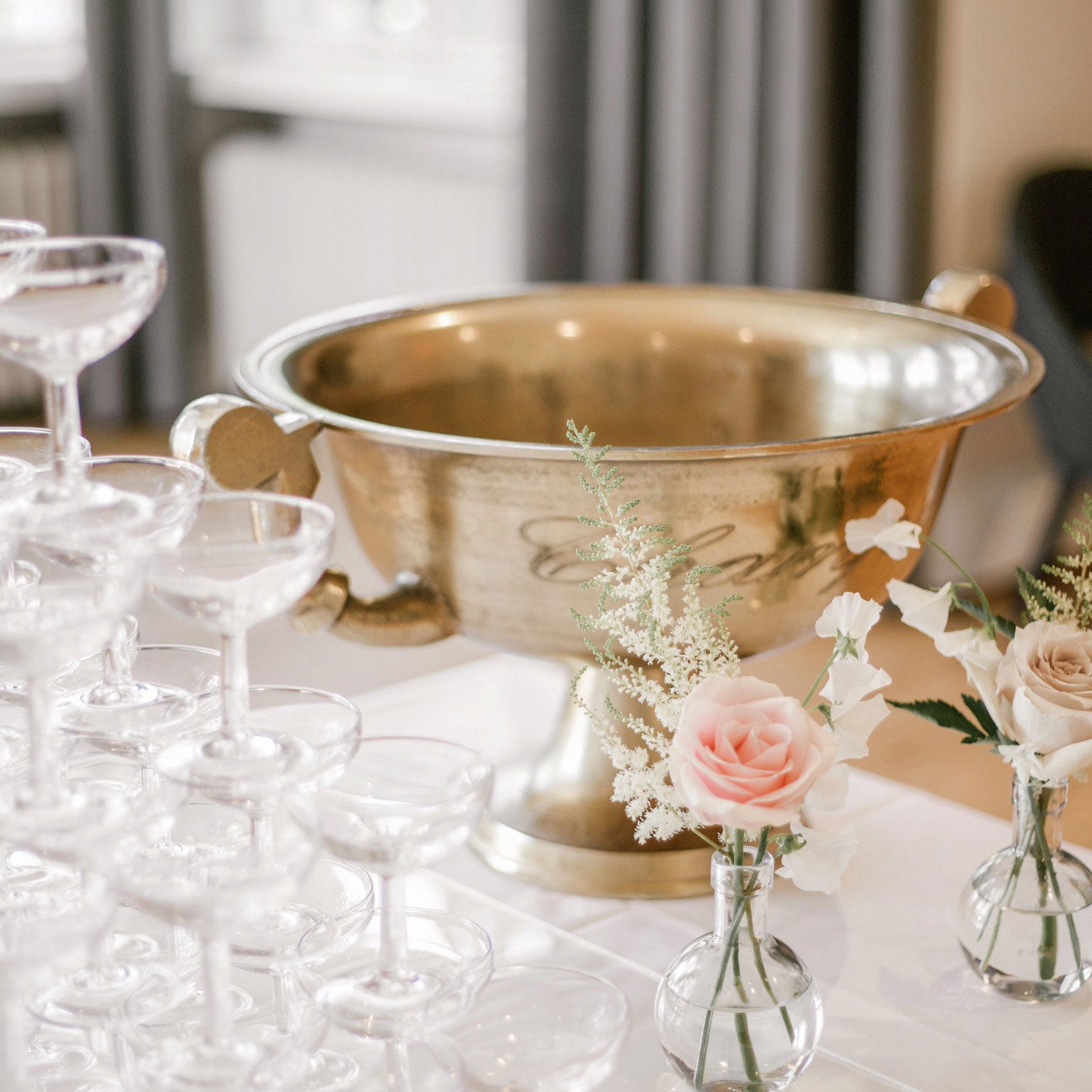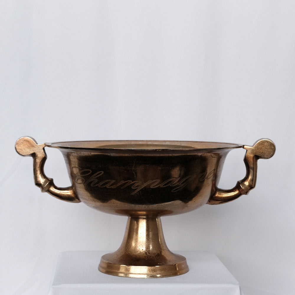 A golden cooler with the text "Champagne". An elegant party crowner, where you can keep your drinks cold.