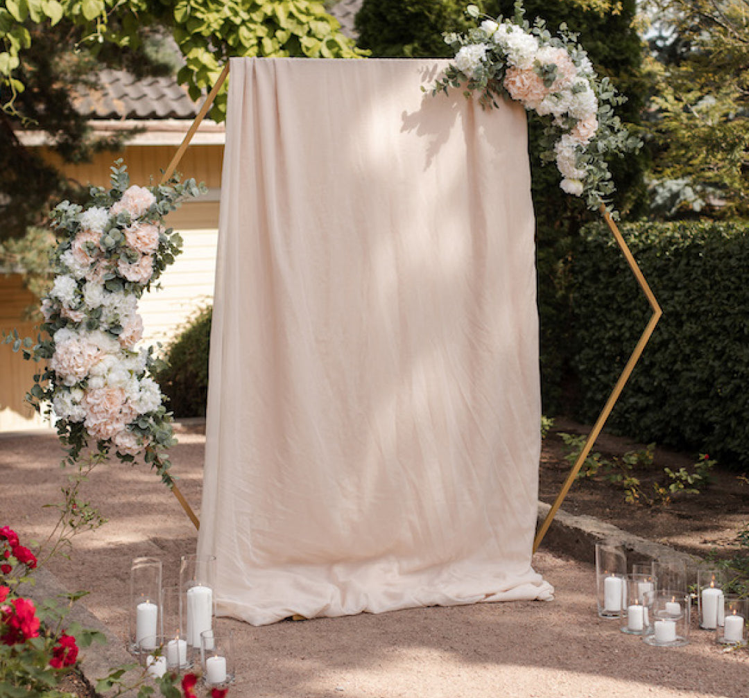Valmiit kukka-asetelmat viimeistelemään helposti esimerkiksi vihkikaaret tai kuvausseinät.