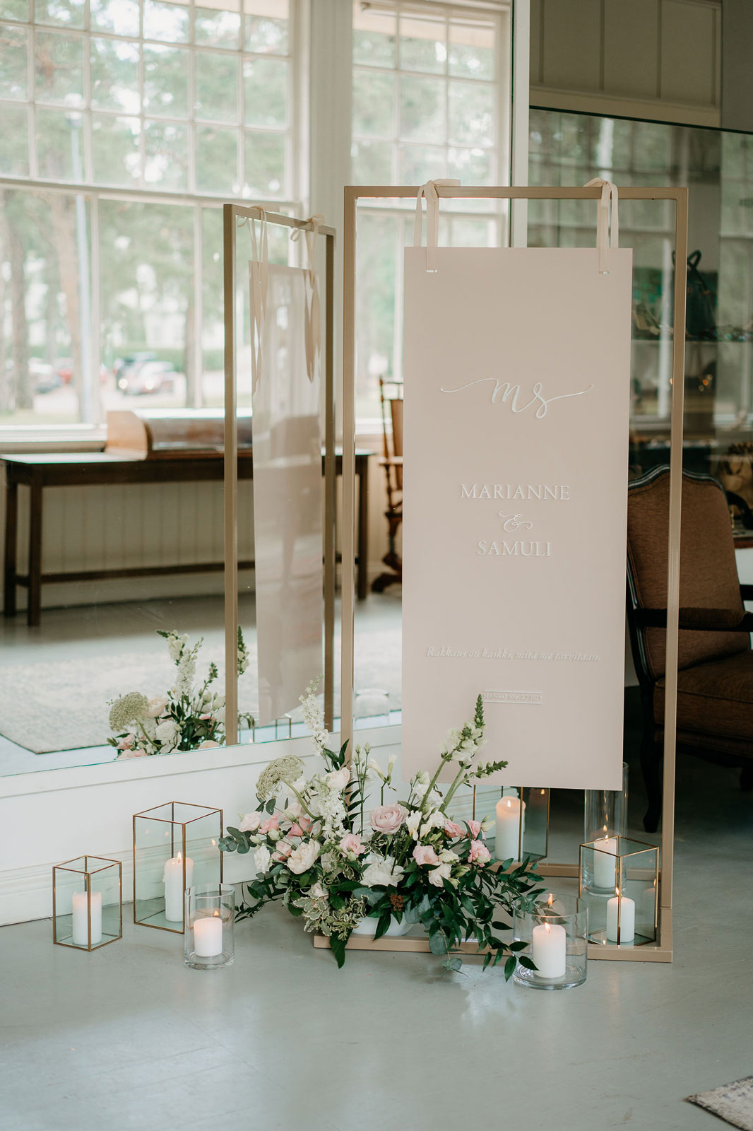 Tyylikäs metallinen kylttiteline esimerkiksi tervetuloa -kyltille tai pöytäkartalle. Ihanteellinen kyltin koko telineeseen olisi korkeus 70 cm x leveys 50 cm (pysty).