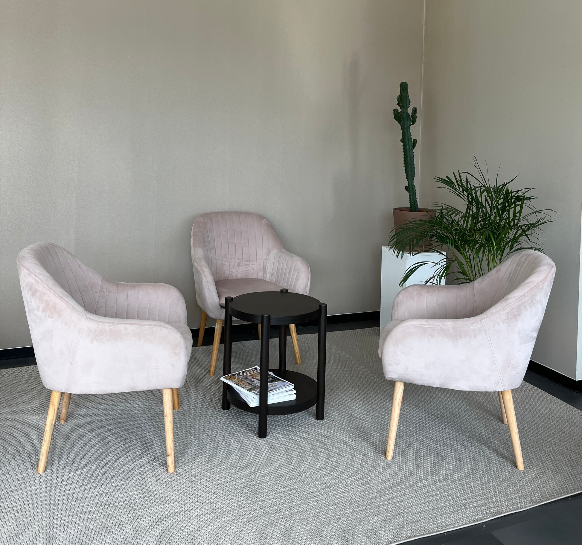 Laajenna loungetilaa tai luo tapahtumaasi kompakti lounge pienemmällä kaluste kokonaisuudella. Setti sisältää 3 kpl blush sävyisiä nojatuoleja sekä pienen pyöreän sohvapöydän tummaa puuta.