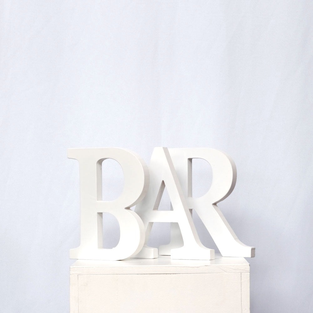 Kauniit puiset Bar -kirjaimet viimeistelevät baarin somistuksen.